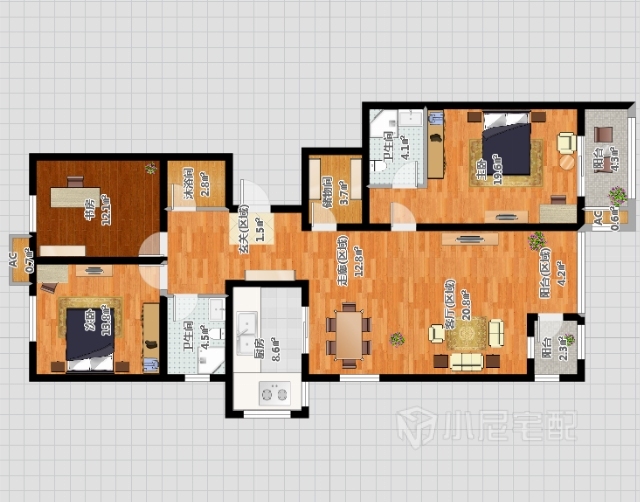 鋪設淺色木地板,選用個深色家具穩(wěn)定空間。
