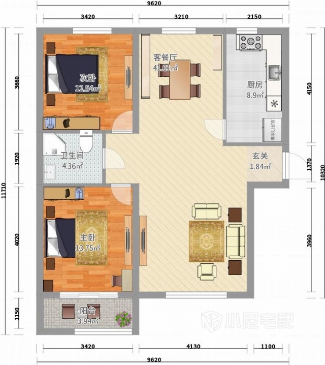 此戶型為三口之家,過上幸福的生活