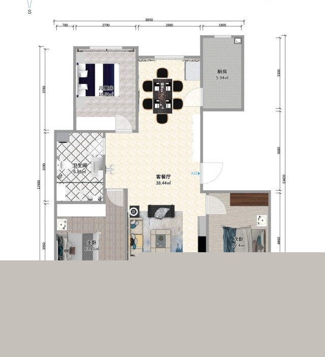 現(xiàn)代三居室 2587